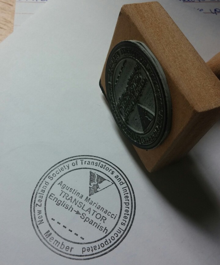 Agustina Marianacci: Certified Translations from English into SpanishNew Zealand government agencies, for example, demand certified translations of all documents you turn in, which ensures it is not realised by an untrained person, computer translation software, or a friend or family member who is not a professional linguist. These translations should bear the stamp and signature of the translator, which in this case looks like that pretty stamp above, provided by NZSTI.